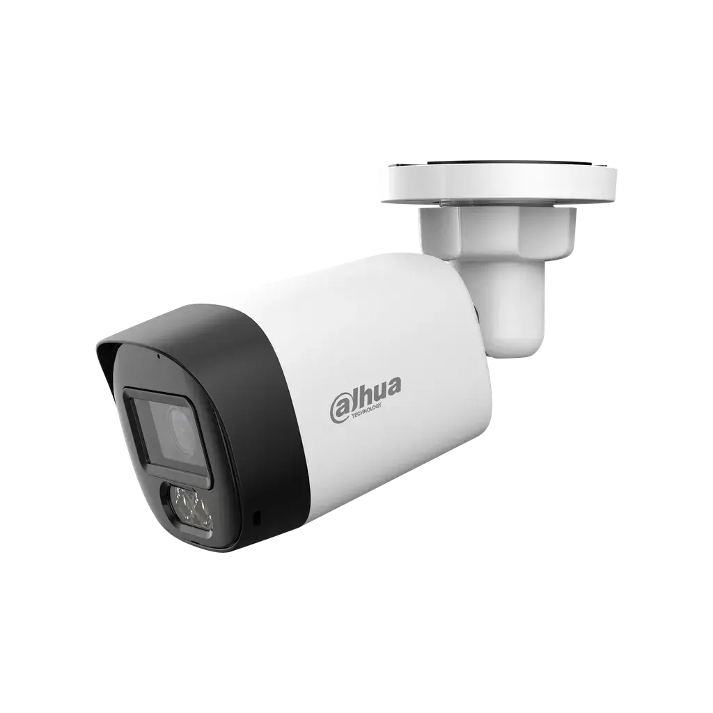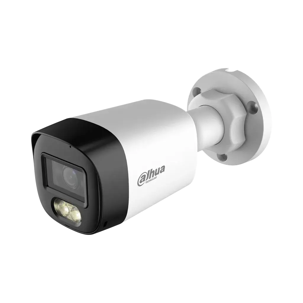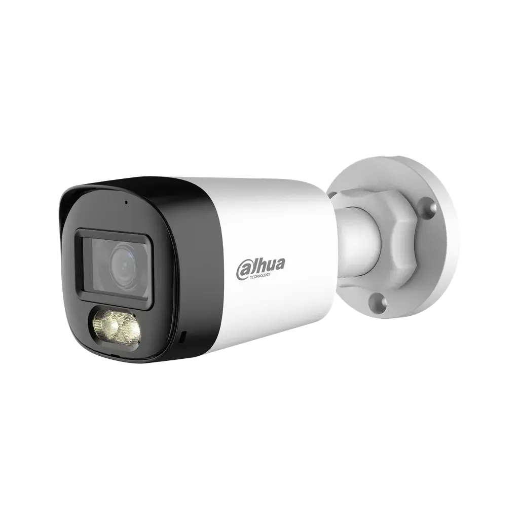Cámara HDCVI Dahua Bullet 5MP, lente fijo 2.8mm, doble iluminación, alcance de 50m, proyección IP67. Ideal para vigilancia de alta calidad.