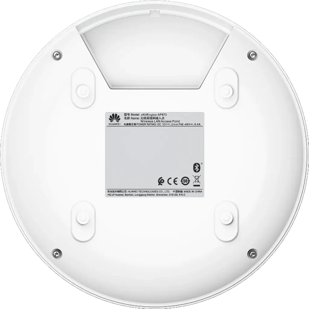 AP673. AP Huawei eKit Wifi 7 con velocidad de 13.66 Gbps cuenta con 3 bandas recomendado para 300 usuarios concurrentes cuenta con 1 puertos de hasta 5Gbps 1 puerto 1Gbps alcance optimo de 40m