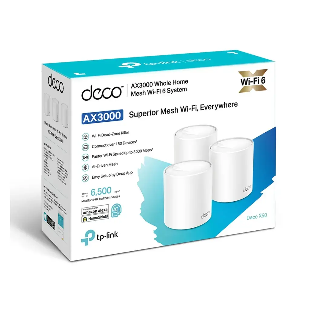 Obtén la máxima velocidad y rendimiento con el Deco X50(1-pack) WiFi 6 Mesh AX3000. Doble banda, MU-MIMO 2x2, 3 puertos 1Gb para una conectividad sin igual. ¡Potencia tu red doméstica ahora!
