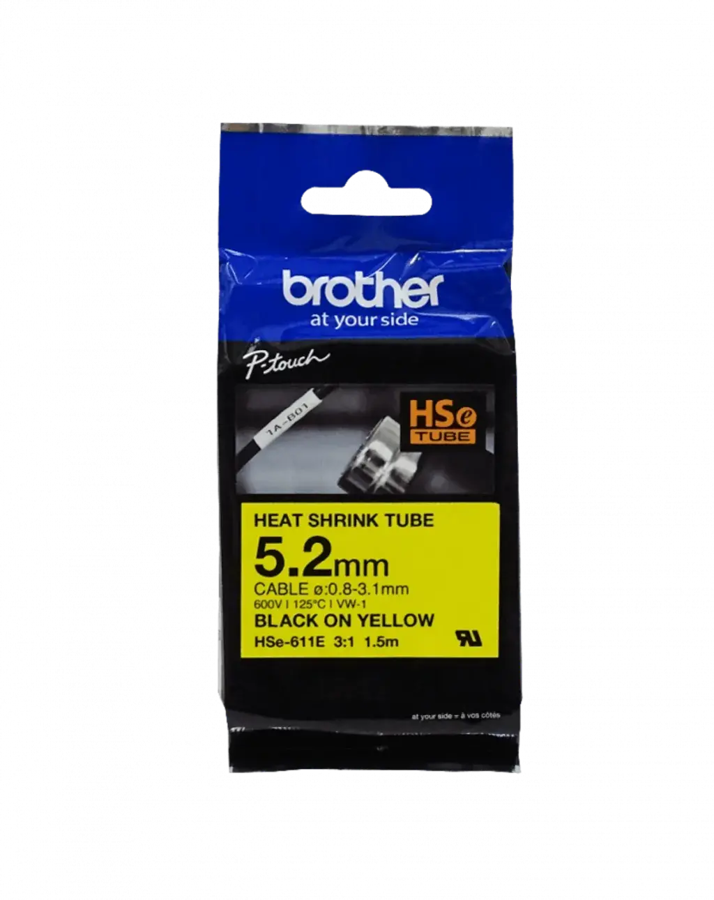 El tubo termo retráctil HSe611e de Brother es ideal para todas tus necesidades de etiquetado, identificación y organización. Con un diámetro de 5,2mm y un rango de contracción de 0,8 a 3,1mm, este tubo ofrece una solución versátil y confiable para diversas aplicaciones.