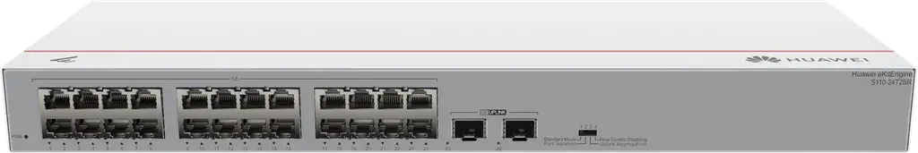 Switch Huawei S110-24T2SR de 24 puertos 10/100/1000Base-T con 2 puertos 1GE SFP. Conmutación de 52 Gbit/s y reenvío de paquetes de 38.69 Mpps. Mejora tu red con alta velocidad y rendimiento. ¡Obtén el tuyo ahora!