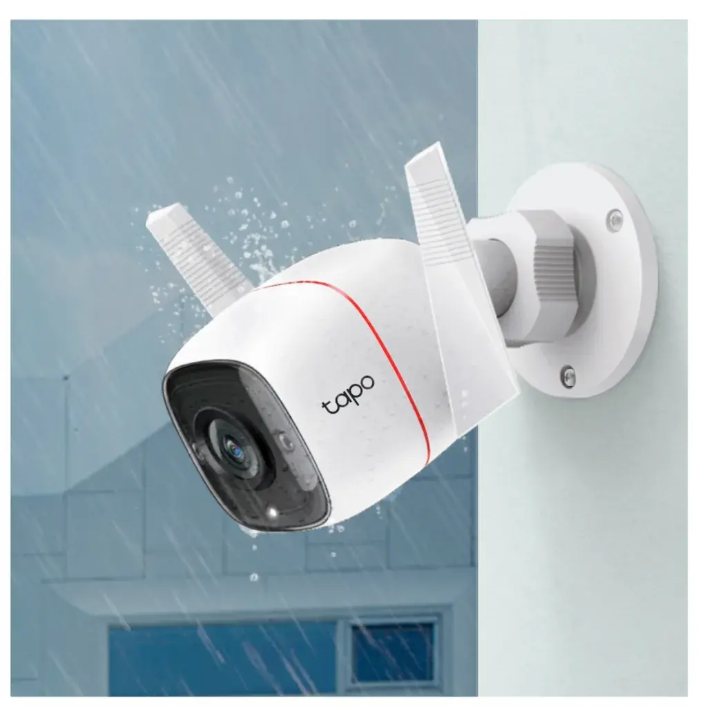 Cámara IP Tapo Wifi de exterior 3MP con visión nocturna, audio bidireccional y almacenamiento hasta 128GB. Asistencia por voz con Google y Alexa. ¡Haz tu hogar más seguro y conectado!